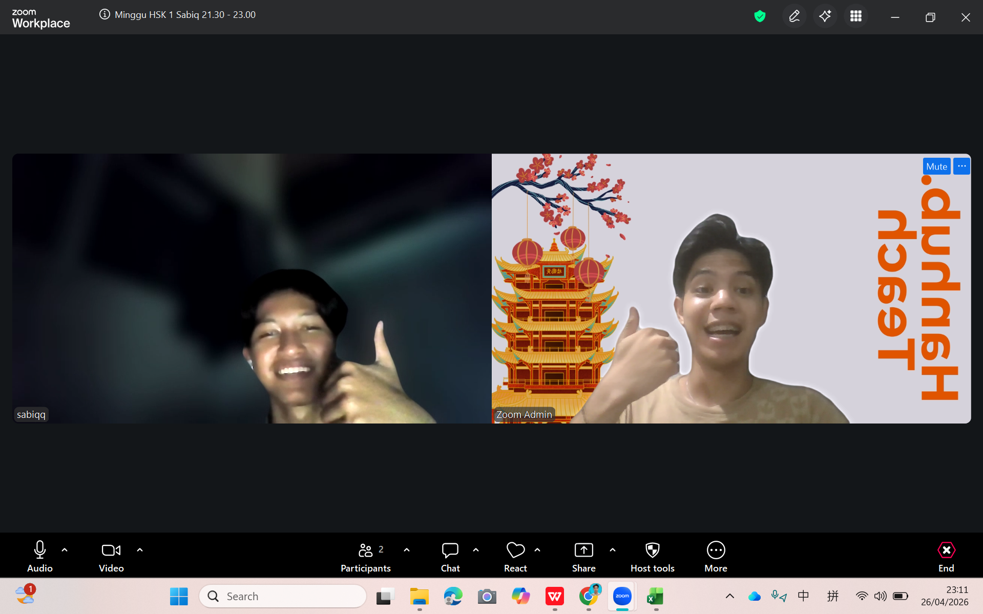"Laoshi Wuming juga bisa berbicara Mandarin dengan sangat lancar, jadi terasa seperti belajar langsung dengan native speaker di setiap sesi." — Ibu Rosa, English Teacher HSK 1